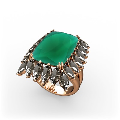 Kök zümrüt ve dumanlı kuvars 925 ayar rose altın kaplama gümüş yüzük