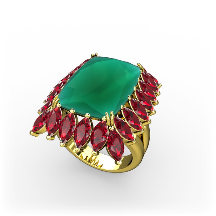Kök zümrüt ve garnet 925 ayar altın kaplama gümüş yüzük