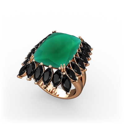 Kök zümrüt ve siyah zirkon 14 ayar rose altın yüzük