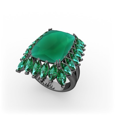 Kök zümrüt ve yeşil kuvars 925 ayar siyah rodyum kaplama gümüş yüzük