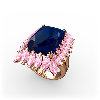 Lab safir ve pembe kuvars 18 ayar rose altın yüzük