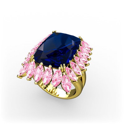 Lab safir ve pembe kuvars 8 ayar altın yüzük