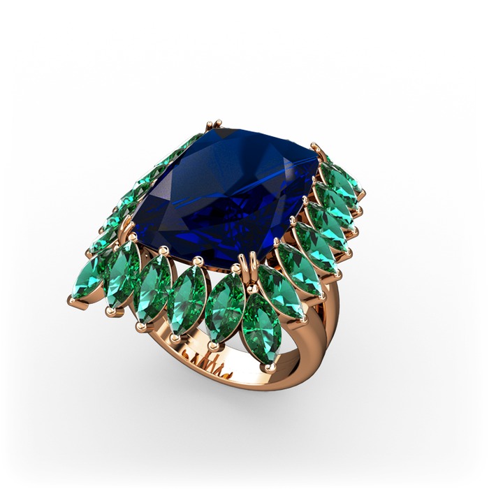 Lab safir ve yeşil kuvars 18 ayar rose altın yüzük