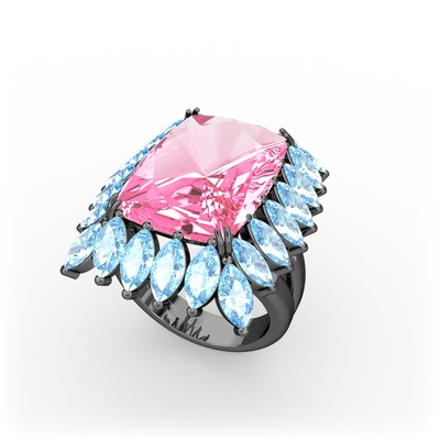 Pembe kuvars ve akuamarin 925 ayar siyah rodyum kaplama gümüş yüzük