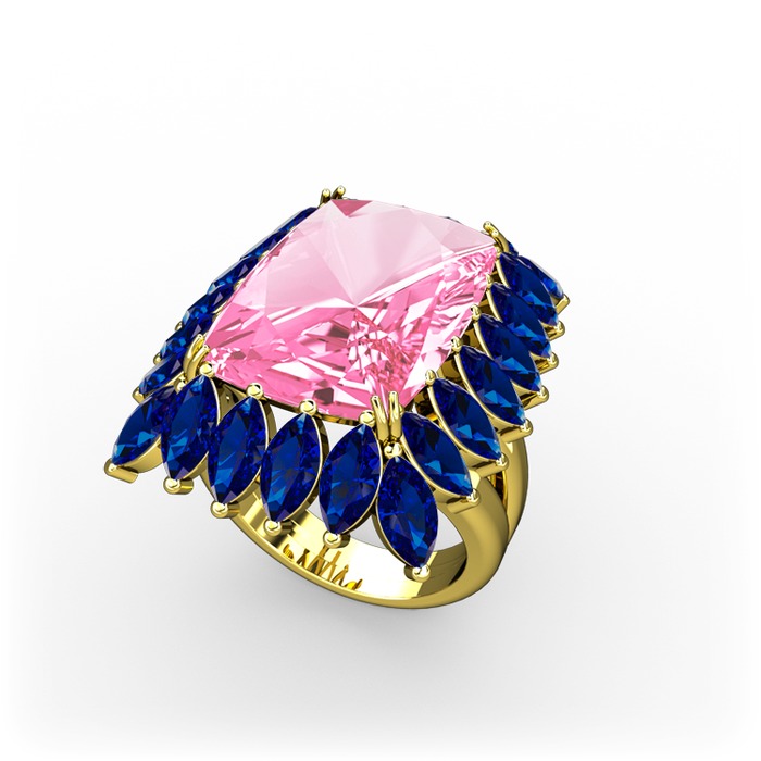 Pembe kuvars ve lab safir 18 ayar altın yüzük