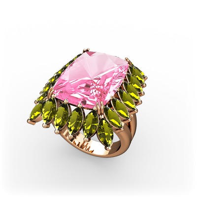 Pembe kuvars ve peridot 925 ayar rose altın kaplama gümüş yüzük