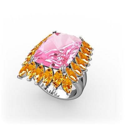 Pembe kuvars ve sitrin 14 ayar beyaz altın yüzük