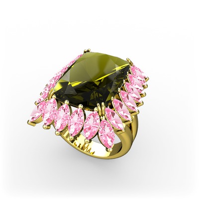 Peridot ve pembe kuvars 925 ayar altın kaplama gümüş yüzük