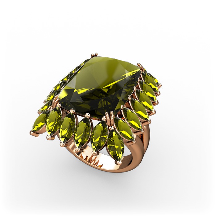 Peridot 925 ayar rose altın kaplama gümüş yüzük