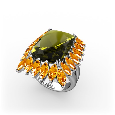 Peridot ve sitrin 8 ayar beyaz altın yüzük