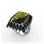 Peridot ve siyah zirkon 8 ayar beyaz altın yüzük