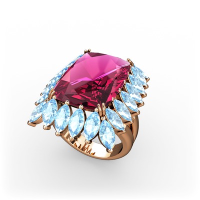 Rodolit garnet ve akuamarin 14 ayar rose altın yüzük