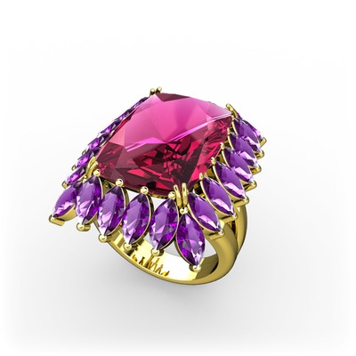 Rodolit garnet ve ametist 925 ayar altın kaplama gümüş yüzük