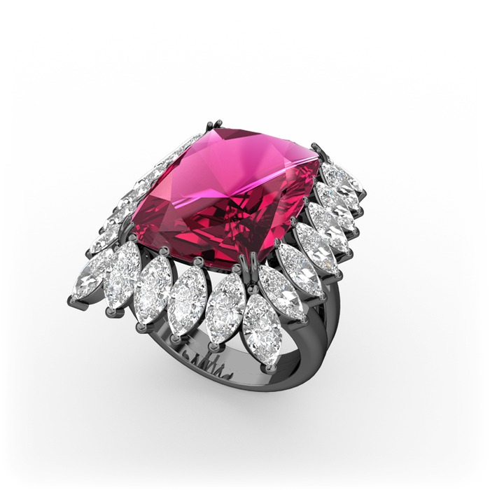 Rodolit garnet ve beyaz zirkon 925 ayar siyah rodyum kaplama gümüş yüzük