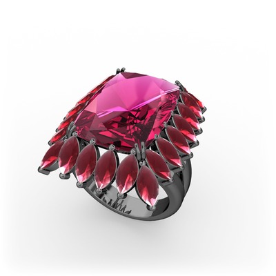 Rodolit garnet ve kök yakut 925 ayar siyah rodyum kaplama gümüş yüzük