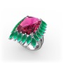 Rodolit garnet ve kök zümrüt 18 ayar beyaz altın yüzük