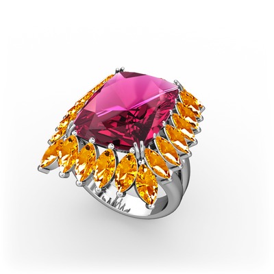 Rodolit garnet ve sitrin 18 ayar beyaz altın yüzük
