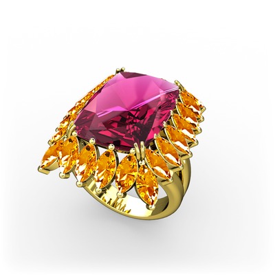 Rodolit garnet ve sitrin 925 ayar altın kaplama gümüş yüzük