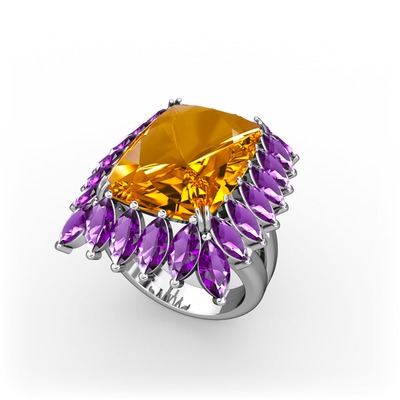 Sitrin ve ametist 18 ayar beyaz altın yüzük