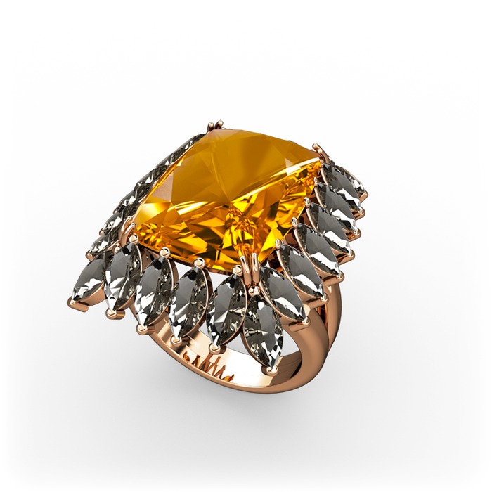 Sitrin ve dumanlı kuvars 925 ayar rose altın kaplama gümüş yüzük