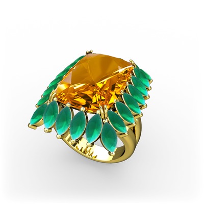 Sitrin ve kök zümrüt 14 ayar altın yüzük