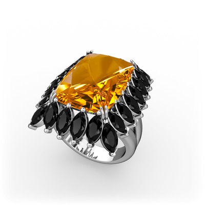Sitrin ve siyah zirkon 8 ayar beyaz altın yüzük