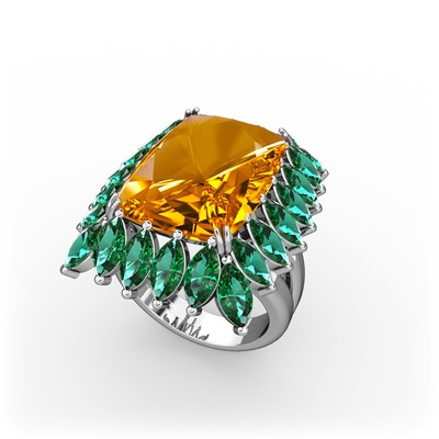 Sitrin ve yeşil kuvars 925 ayar gümüş yüzük
