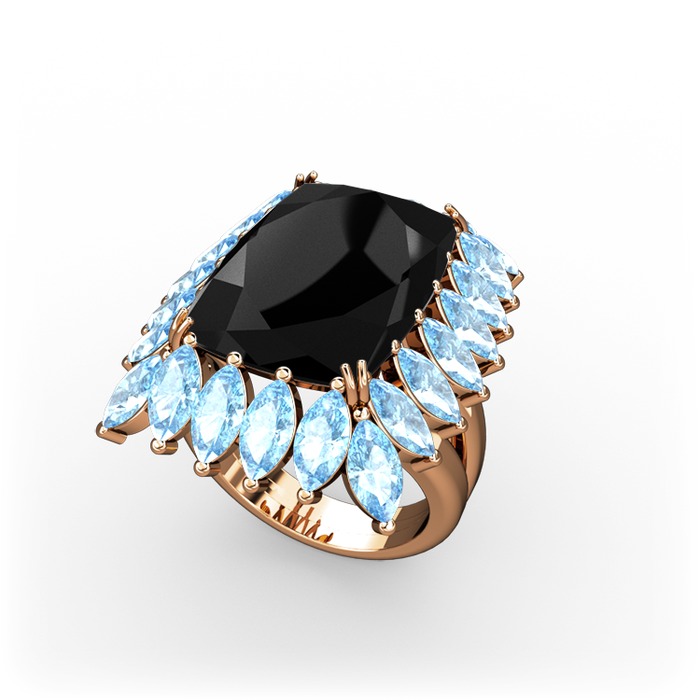 Siyah zirkon ve akuamarin 18 ayar rose altın yüzük