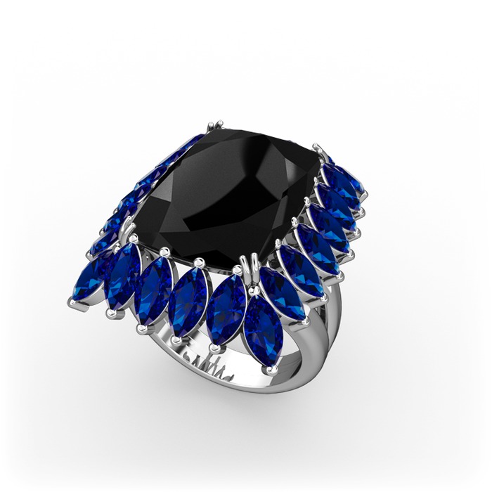 Siyah zirkon ve lab safir 18 ayar beyaz altın yüzük