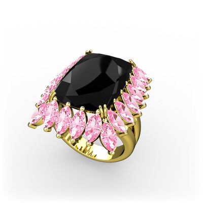 Siyah zirkon ve pembe kuvars 18 ayar altın yüzük