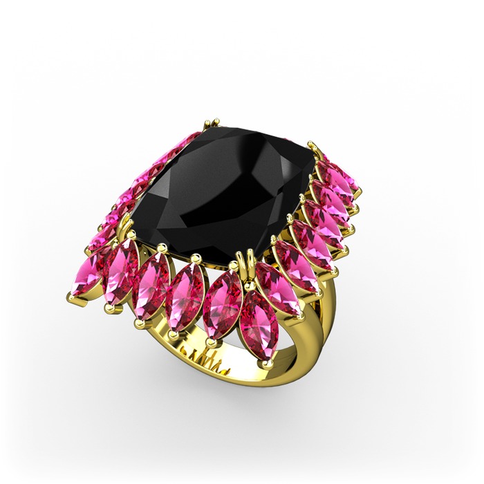 Siyah zirkon ve rodolit garnet 925 ayar altın kaplama gümüş yüzük