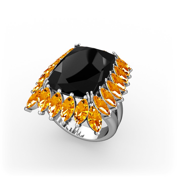 Siyah zirkon ve sitrin 925 ayar gümüş yüzük