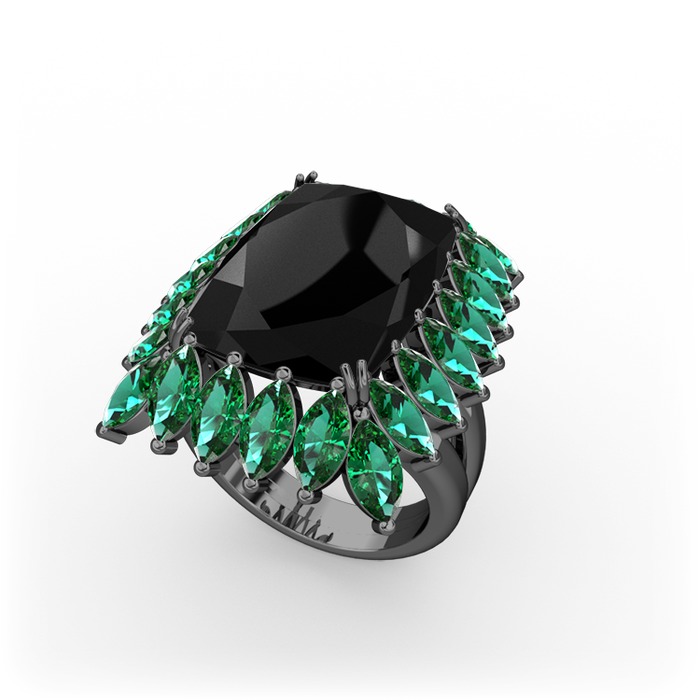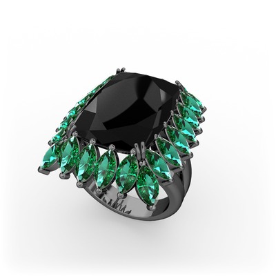 Siyah zirkon ve yeşil kuvars 925 ayar siyah rodyum kaplama gümüş yüzük