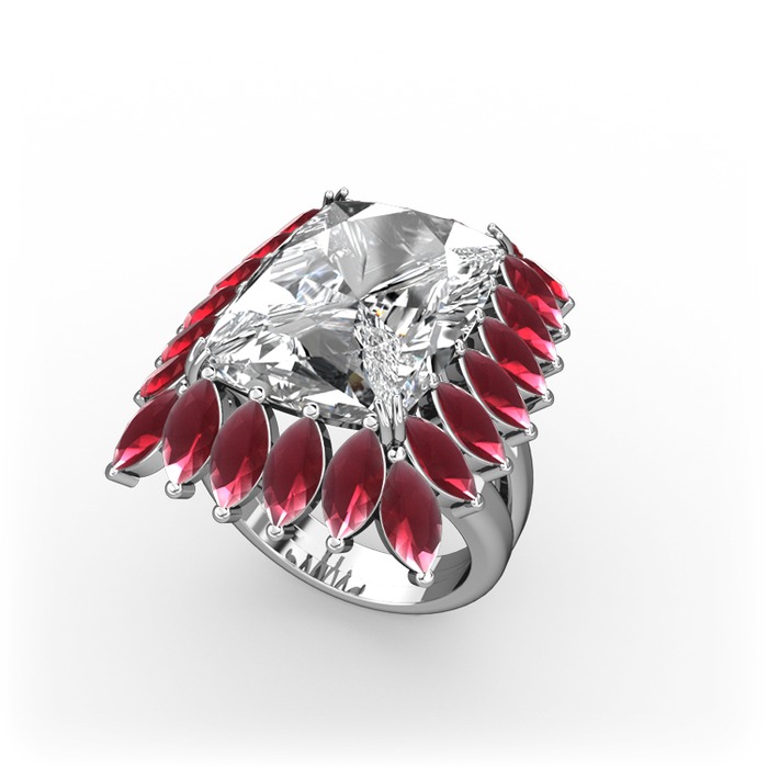Swarovski ve kök yakut 14 ayar beyaz altın yüzük