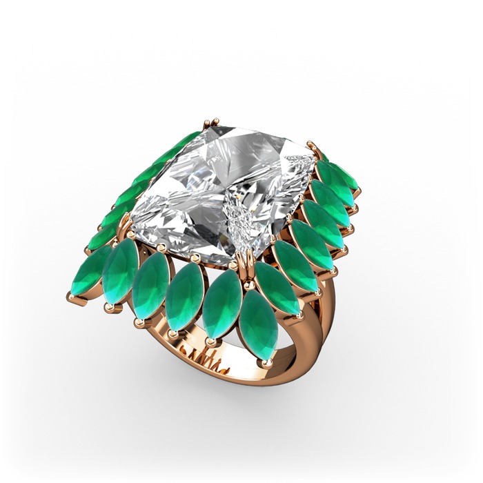 Swarovski ve kök zümrüt 8 ayar rose altın yüzük