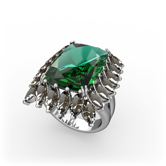 Yeşil kuvars ve dumanlı kuvars 925 ayar gümüş yüzük