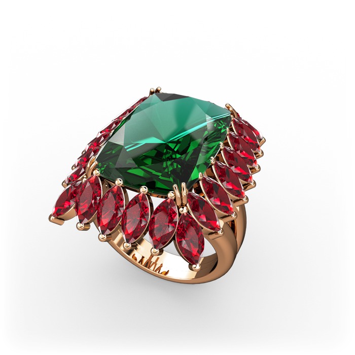 Yeşil kuvars ve garnet 8 ayar rose altın yüzük