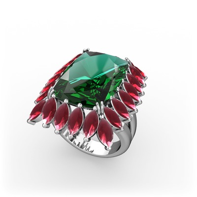 Yeşil kuvars ve kök yakut 18 ayar beyaz altın yüzük