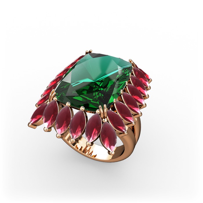 Yeşil kuvars ve kök yakut 8 ayar rose altın yüzük