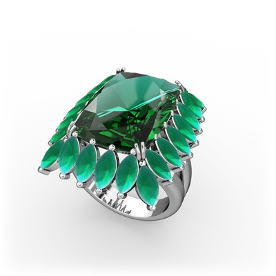 Yeşil kuvars ve kök zümrüt 14 ayar beyaz altın yüzük