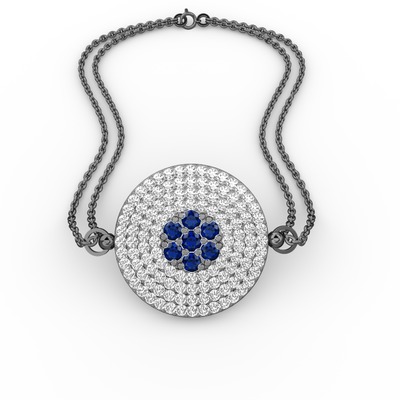 Lab safir ve beyaz zirkon 925 ayar siyah rodyum kaplama gümüş bilezik