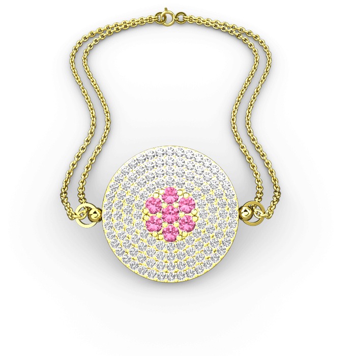 Pembe kuvars ve swarovski 14 ayar altın bilezik