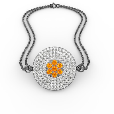 Sitrin ve beyaz zirkon 925 ayar siyah rodyum kaplama gümüş bilezik
