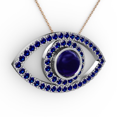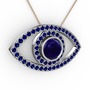 Lab safir 14 ayar beyaz altın kolye (40 cm rose altın rolo zincir)