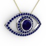 Lab safir 18 ayar beyaz altın kolye (40 cm altın rolo zincir)