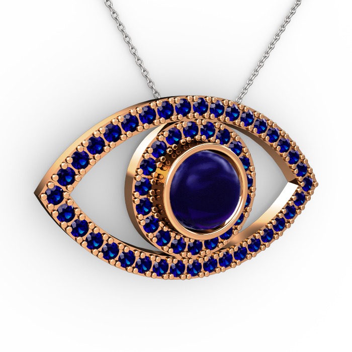 Lab safir 18 ayar rose altın kolye (40 cm beyaz altın rolo zincir)