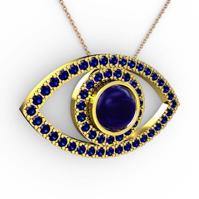 Lab safir 8 ayar altın kolye (40 cm gümüş rolo zincir)