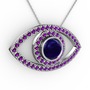 Lab safir ve ametist 14 ayar beyaz altın kolye (40 cm beyaz altın rolo zincir)