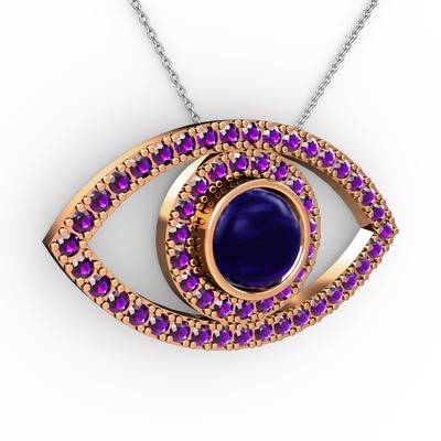 Lab safir ve ametist 14 ayar rose altın kolye (40 cm beyaz altın rolo zincir)