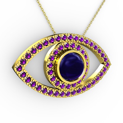 Lab safir ve ametist 8 ayar altın kolye (40 cm altın rolo zincir)